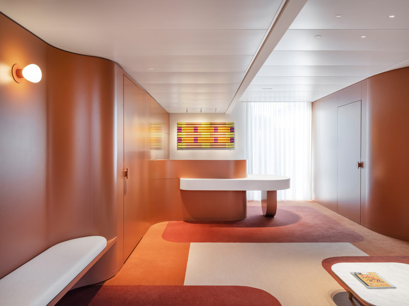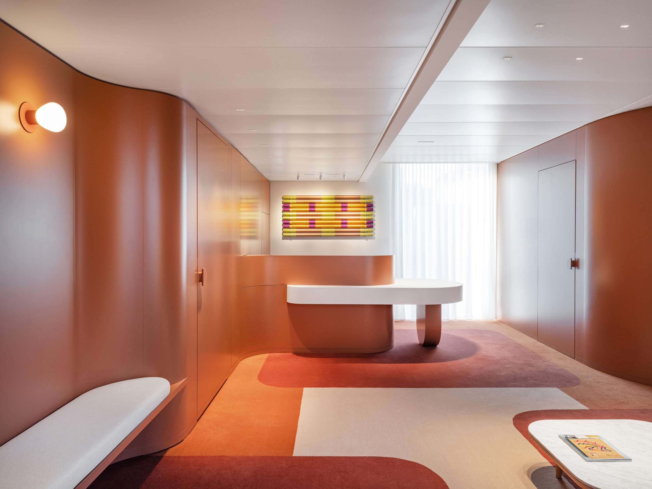 L’aménagement proposé crée un équilibre entre des espaces de circulation, dynamiques et colorés, favorisant le travail collaboratif, et des espaces plus calmes, propices à la concentration. Couleurs, transparences et matières sont choisies de sorte à créer une atmosphère vivante et harmonieuse, tout en apportant une identité forte à l’ensemble.